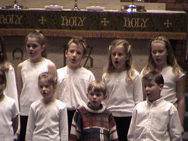 Douglas, being younger, is part of the Cherub Choir, which does much simpler songs. Mostly they specialize in standing in front of the congregation and looking adorable. |