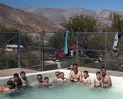 Keith and Doug went camping the last weekend in March in the desert in eastern San Diego county with the YMCA Indian Guides.  It was our first tent camp out since the family went camping last Labor Day.  The tribe sent 9 father-son pairs.  We went on a couple of hikes, went swimming in the hot spring-fed pool, and played games like tug of war and water balloon toss.  We also had a campfire with a storyteller and skits. And S’mores!  When the dads gave the boys a break from the nature stuff, the boys played very well together, playing Yu gi oh! Cards, RC cars, Gameboy, and football.  As host tribe, we arranged the games and made the water balloons.  As chief of the host tribe, Keith made all the reservations, campsite assignments, and nice-talked the rangers, who just remembered Y-Indian Guides as the group that lost a boy a couple of years ago. (Not us.)