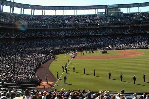 To top it all off, on Sunday afternoon, Aunt Betty called to offer Brad a ticket and a ride to the Padres Opening Game the next day.  Of course, he would have to get out of school early, but he didn’t seem to mind. (Nor was he the only child to leave early for the afternoon game, judging from the sign out sheet in the office, and the number of kids wearing the give away cap at school the following day.)  As Kristi said, if Brad doesn’t remember his childhood very, very fondly, there’s something wrong.  (Maybe he forgot the URL, quipped webmaster Keith).
