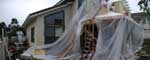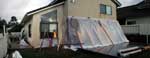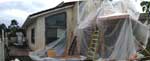 Feb. 19, 2004 Rafters on the second story, plywood on the first story roof, and plastic all around as the race is on to beat the rain...again.