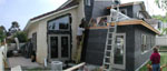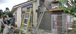 April 28, 2004 Granite counter tops are installed in the kitchen and the stucco crew returns for a second attempt to match the color of the old house.