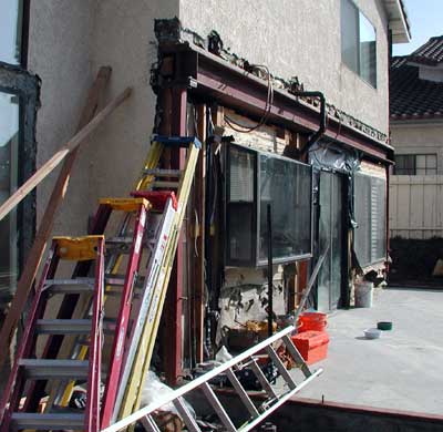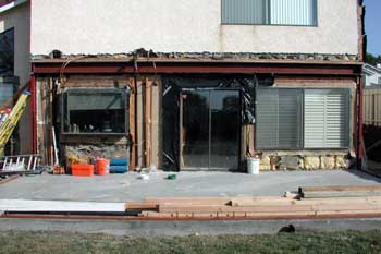 Sliding glass door is back in, but notice daylight between I beam bottom