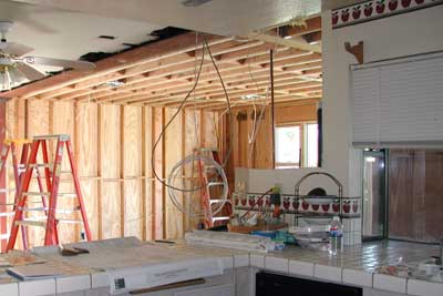 wall is demo'd, connecting the bedroom its new addition. |