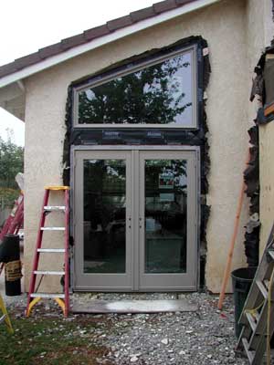 From the outside, what the french doors and new window look like
