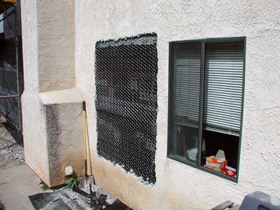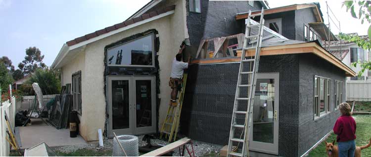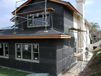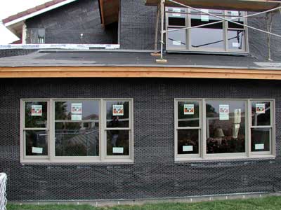 tar paper and chicken wire in preparation for the stucco. And the bedroom
