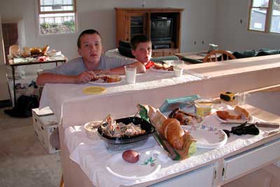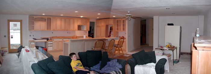 returns daily. He's nearing completion. We've reconfigured the family room couch and TV to something approximating the final arrangement. |