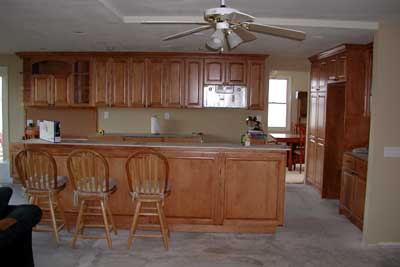 Craig installed the knobs and pulls in the kitchen.  The distressed nickel Kristi picked out goes great with the cabinets.  Tomorrow the granite counter tops arrive for installation.