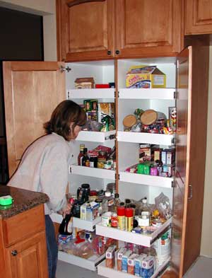 Now that the cabinets and knobs/pulls are in, Kristi has begun to move back into the kitchen.  She has already made an attempt at filling the pantry.  She has wanted pull out shelves since her mother got them as part of a kitchen remodel on the farm nearly 20 years ago.