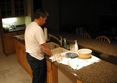 The sink is in (it even has water!) but the dishwasher isn't, so the new sink is getting a work out.